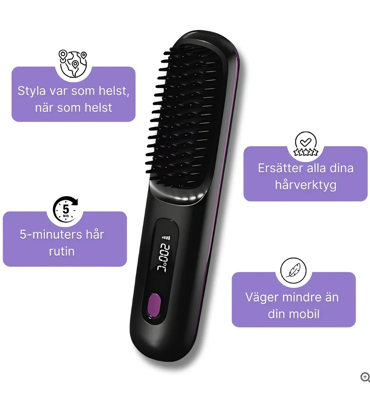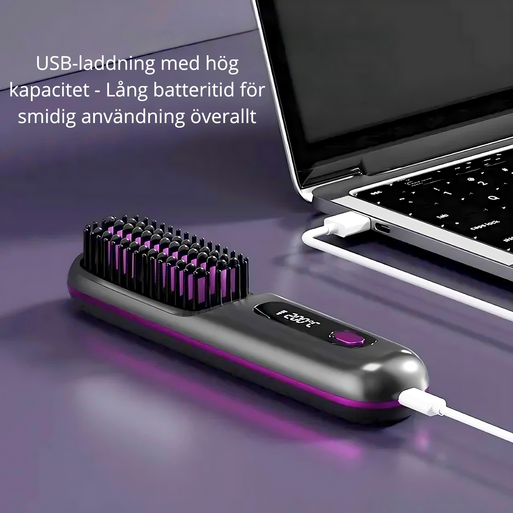 Vår trådlösa värmekam plattar håret snabbt och skonsamt med salongskänsla, oavsett om du är hemma eller på språng.